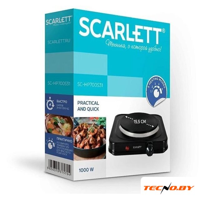 электрическая плита, 1 конфорка, 1000 Вт, 21×21×6 см