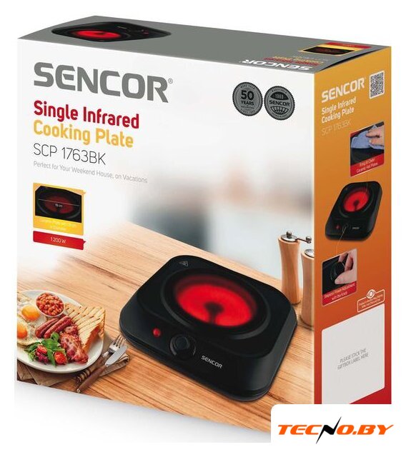 инфракрасная плита, 1 конфорка, 2000 Вт, 33×38×8 см