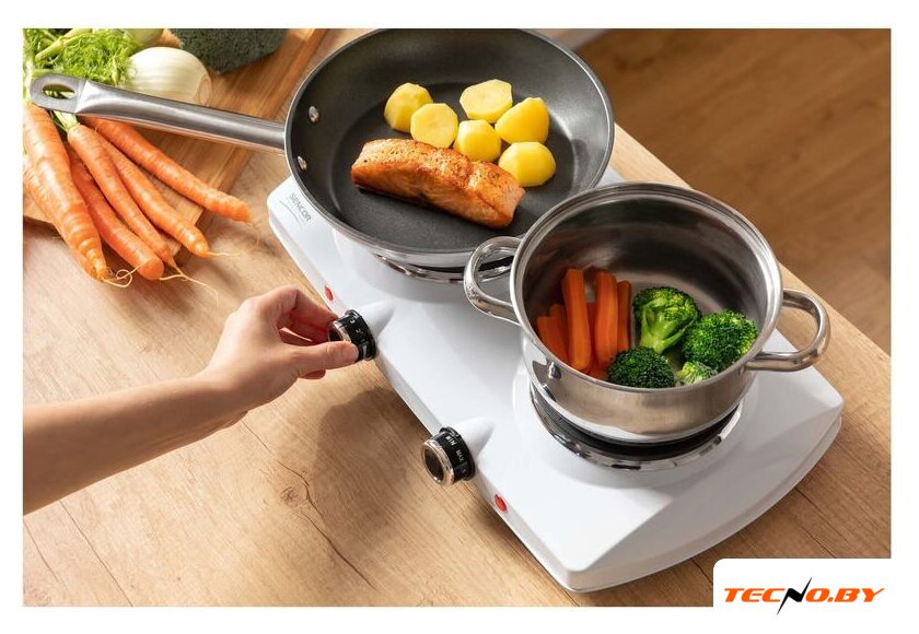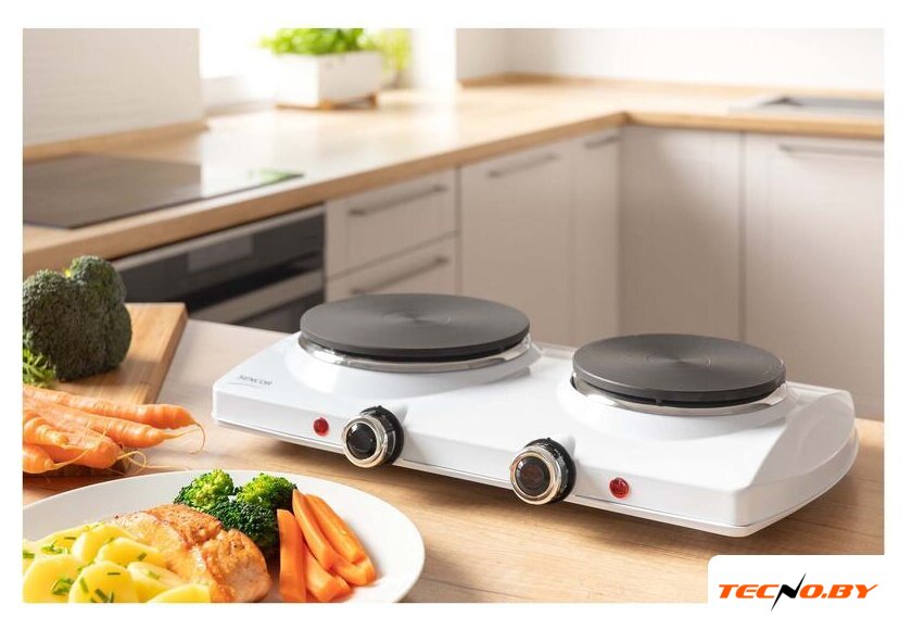 электрическая плита, 2 конфорки, 2000 Вт, 54×27.5×8.2 см