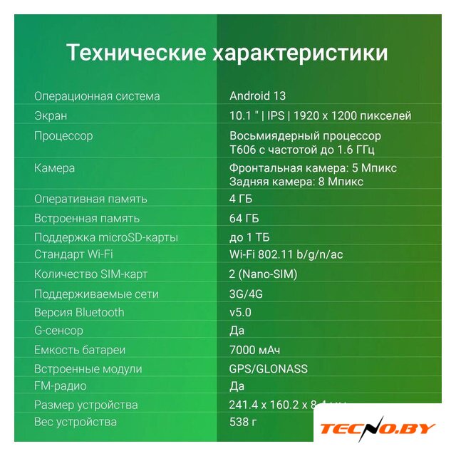 10.1" IPS, 60 Гц (1920x1200), Android, Unisoc Tiger T610, ОЗУ 4 ГБ, флэш-память 128 ГБ, цвет серый