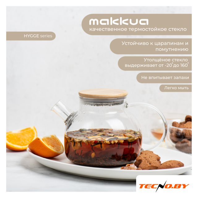 заварочный чайник, материал: стекло, 800 мл, цвет: прозрачный