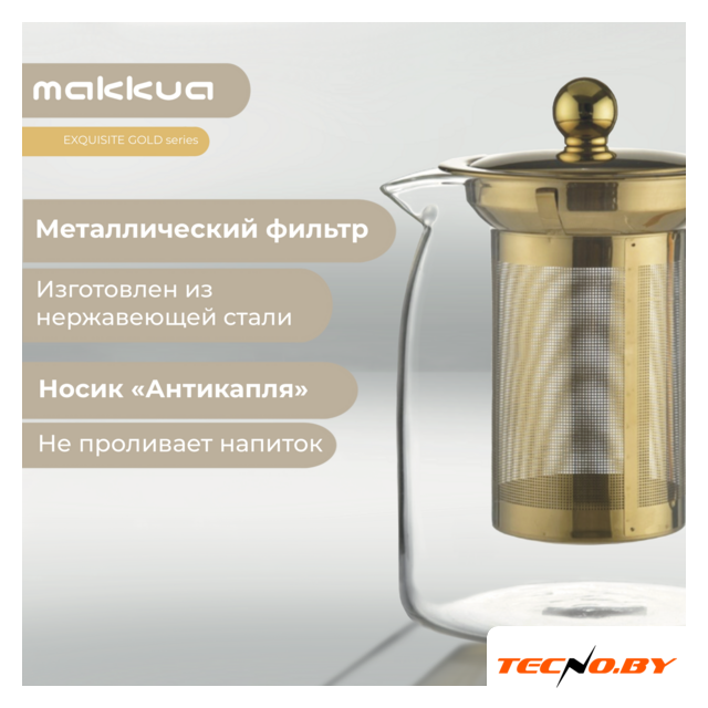 заварочный чайник, материал: стекло, 800 мл, цвет: прозрачный