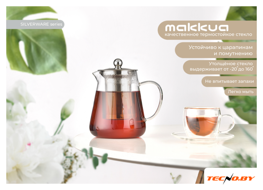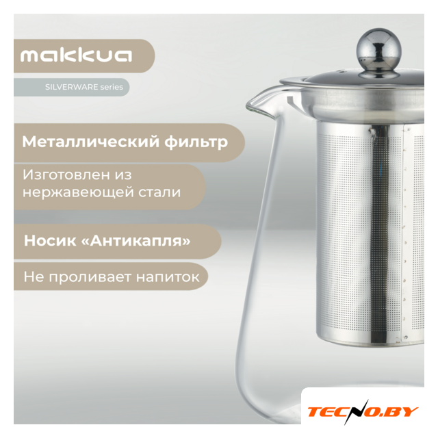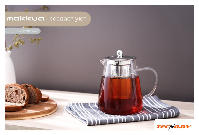 заварочный чайник, материал: стекло, 1000 мл, цвет: прозрачный