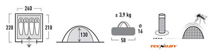 | Водостойкость тента | 1 500 мм вод. ст. |