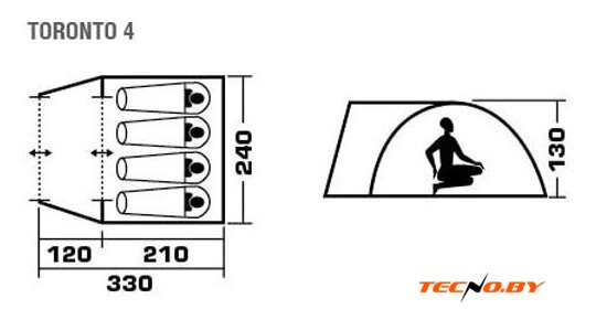 треккинговая, весна/лето/осень, 4-местная, 1 вход, 1 комната, противомоскитная сетка, тамбур, штормовые оттяжки, ДхШхВ: 330x240x130 см