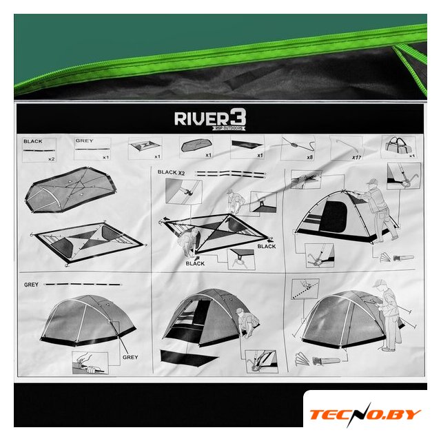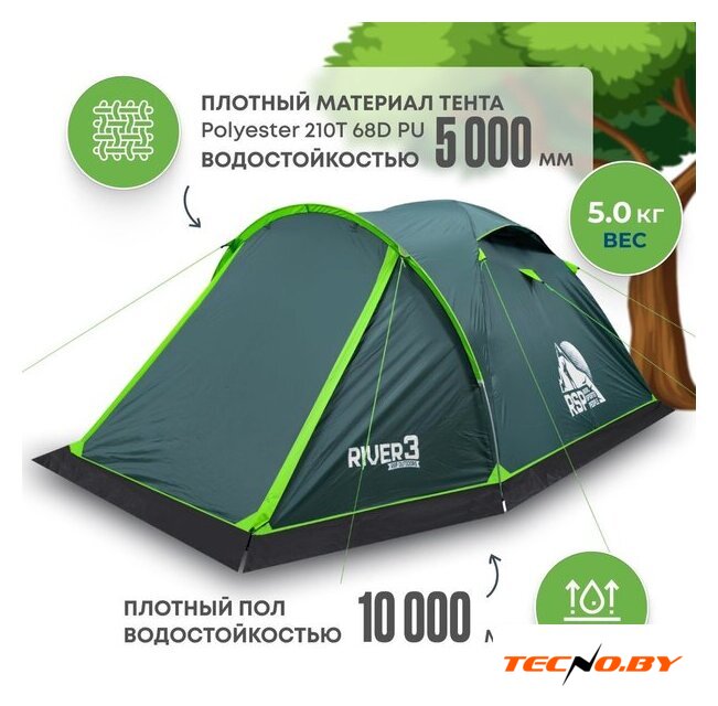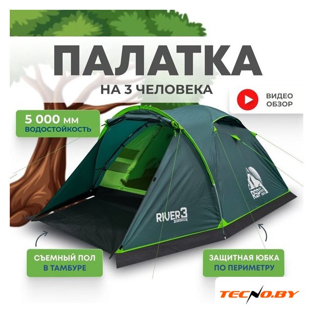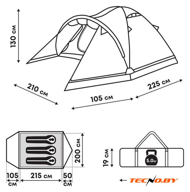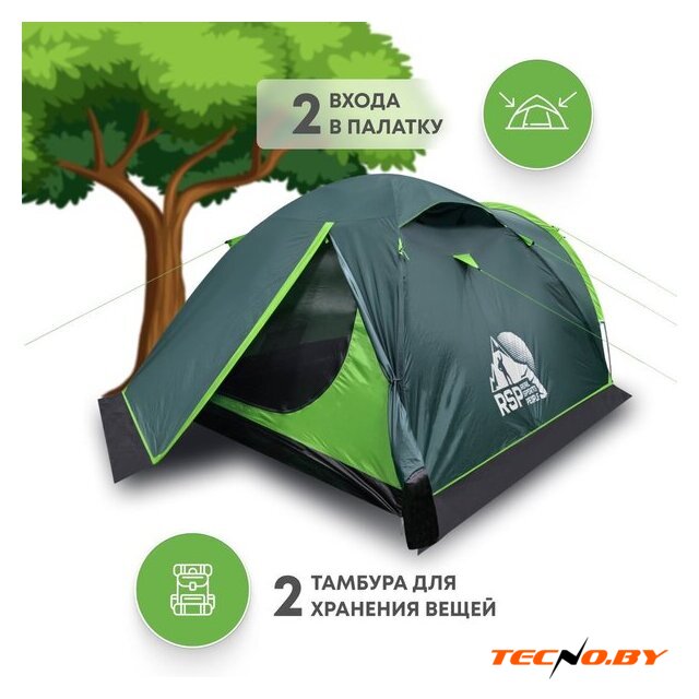 треккинговая, весна/лето/осень, 3-местная, 2 входа, 1 комната, штормовые оттяжки, ДхШхВ: 340x210x150 см