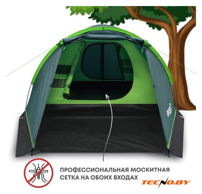 треккинговая, весна/лето/осень, 4-местная, 1 вход, 1 комната, противомоскитная сетка, тамбур, штормовые оттяжки, ДхШхВ: 340x260x145 см