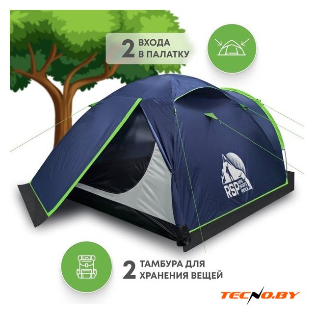 треккинговая, весна/лето/осень, 3-местная, 2 входа, 1 комната, противомоскитная сетка, тамбур, штормовые оттяжки, ДхШхВ: 490x220x130 см