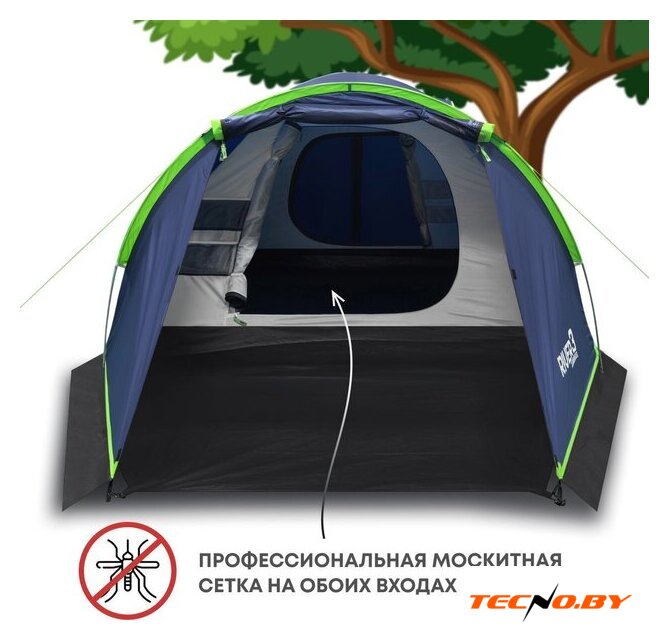 треккинговая, весна/лето/осень, 4-местная, 1 вход, 1 комната, противомоскитная сетка, тамбур, штормовые оттяжки, ДхШхВ: 340x260x145 см