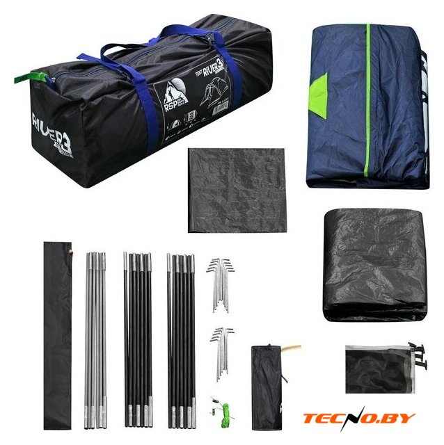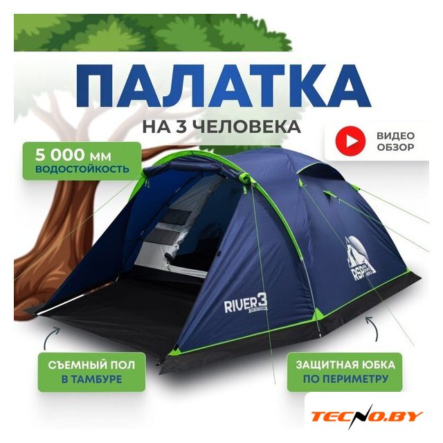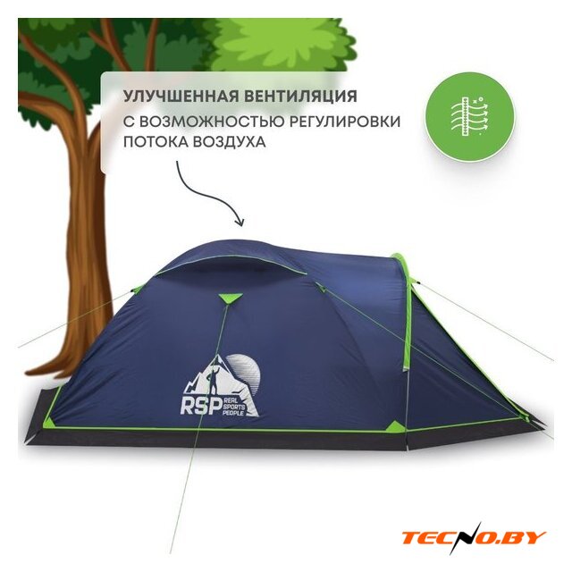 треккинговая, весна/лето/осень, 3-местная, 2 входа, 1 комната, штормовые оттяжки, ДхШхВ: 340x210x150 см