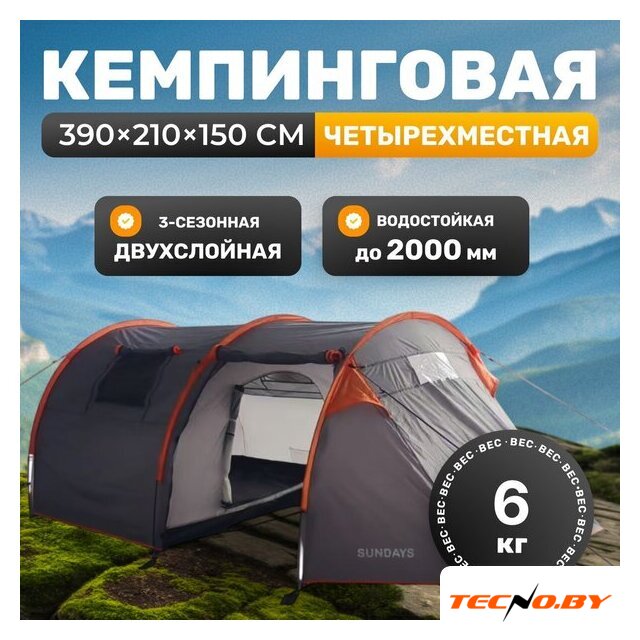 кемпинговая, весна/лето/осень, 4-местная, 2 входа, 1 комната, ДхШхВ: 240x240x130 см