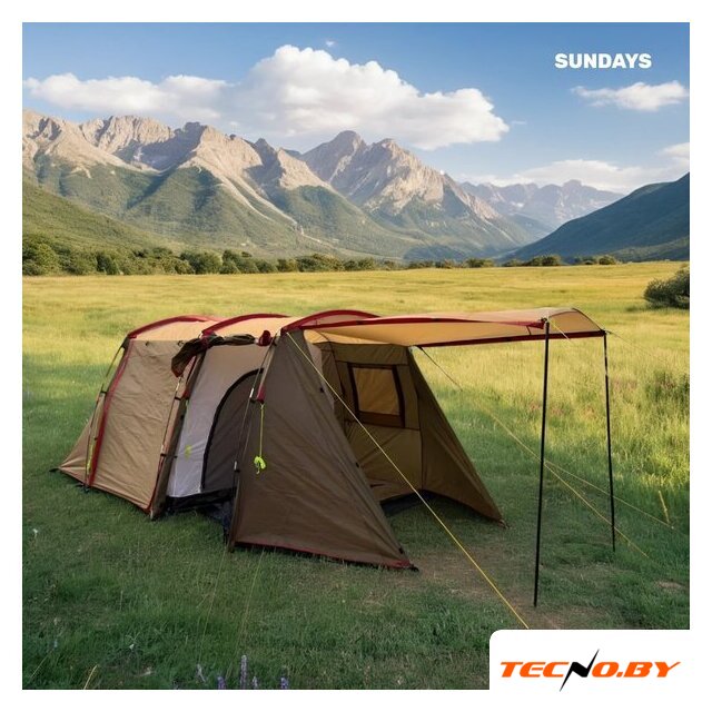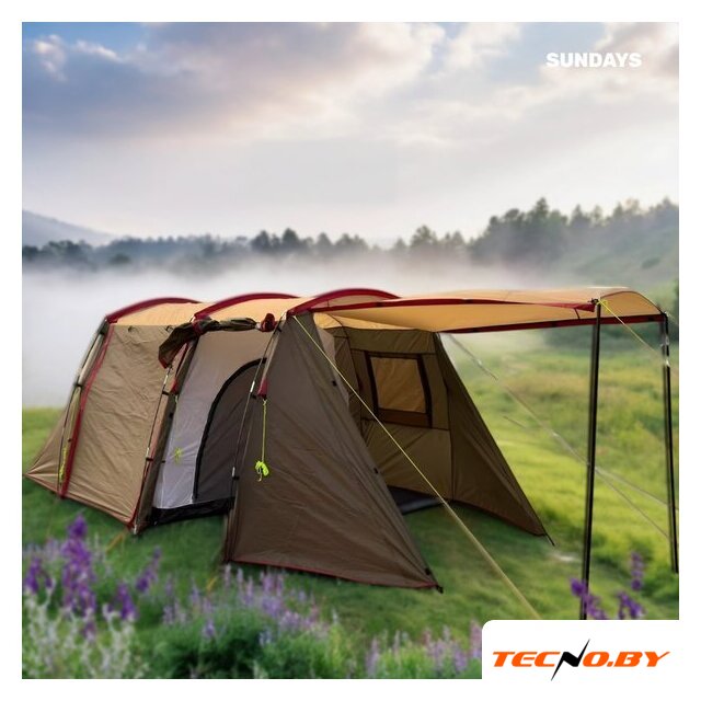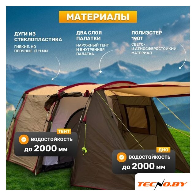кемпинговая, весна/лето/осень, 3-местная, 2 входа, 1 комната, противомоскитная сетка, тамбур, штормовые оттяжки, ДхШхВ: 310x210x205 см