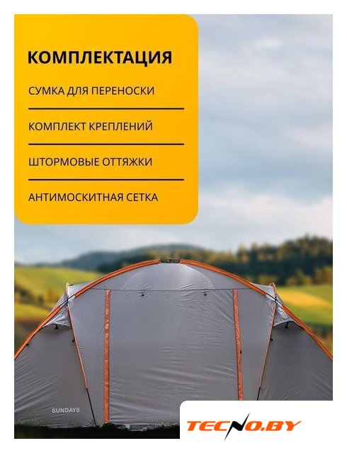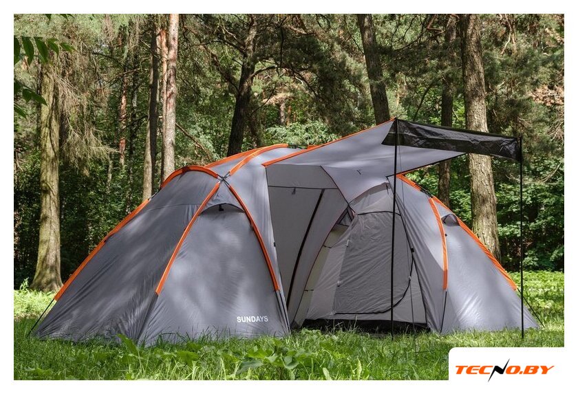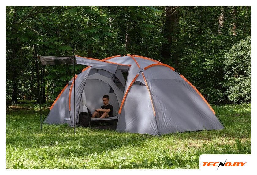 кемпинговая, весна/лето/осень, 4-местная, 1 вход, 1 комната, противомоскитная сетка, тамбур, штормовые оттяжки, ДхШхВ: 390x255x140 см
