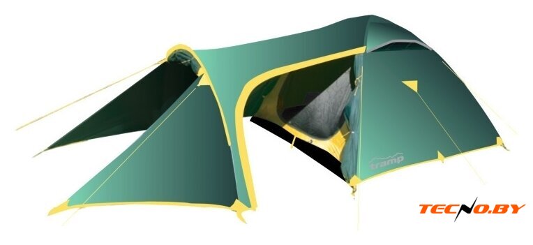 треккинговая, весна/лето/осень, 4-местная, 2 входа, 1 комната, противомоскитная сетка, тамбур, штормовые оттяжки, ДхШхВ: 375x255x140 см