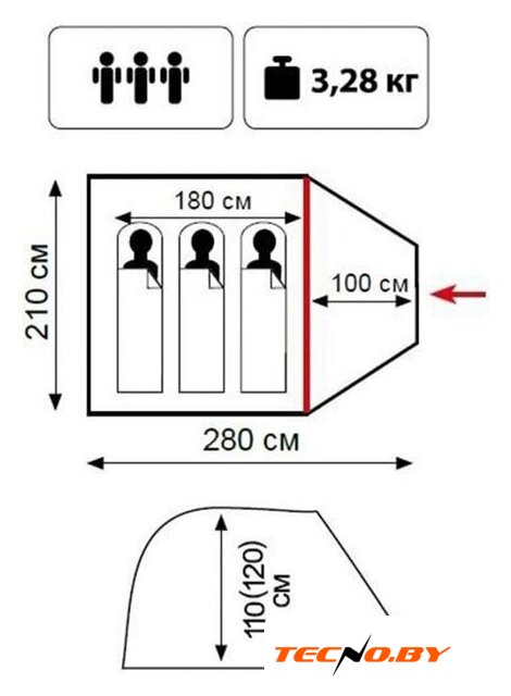 треккинговая, весна/лето/осень, 3-местная, 1 комната, ДхШхВ: 275x215x110 см