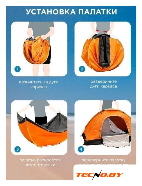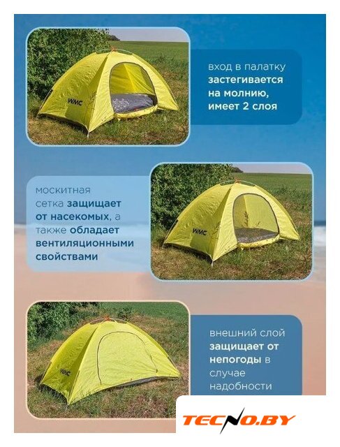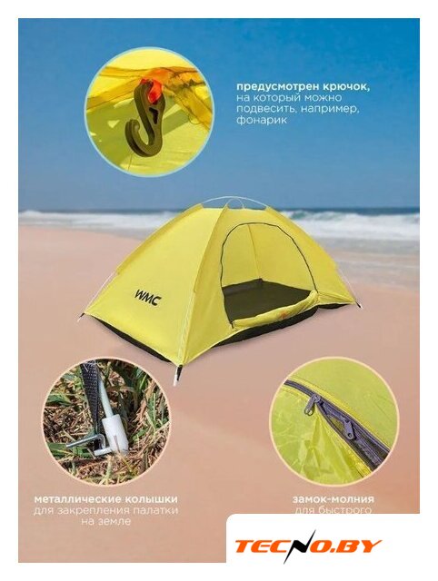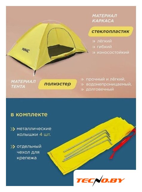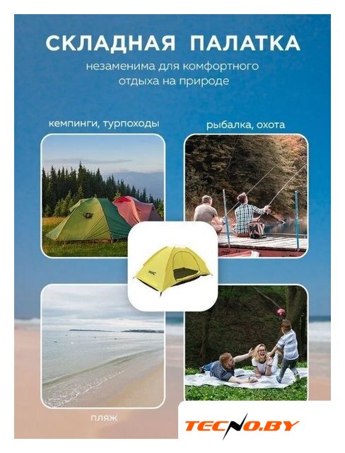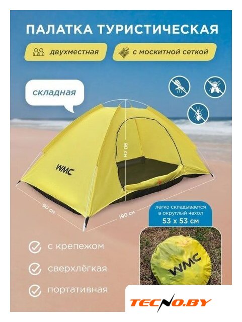 кемпинговая, весна/лето/осень, 2-местная, 1 вход, 1 комната, противомоскитная сетка, штормовые оттяжки, ДхШхВ: 180x120x100 см