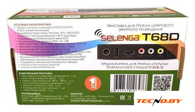 Комплектация | приставка;пульт ДУ;3RCA -3RCA;батарейки ААА;блок сетевого питания;руководство пользователя на русском языке;гарантийный талон. |