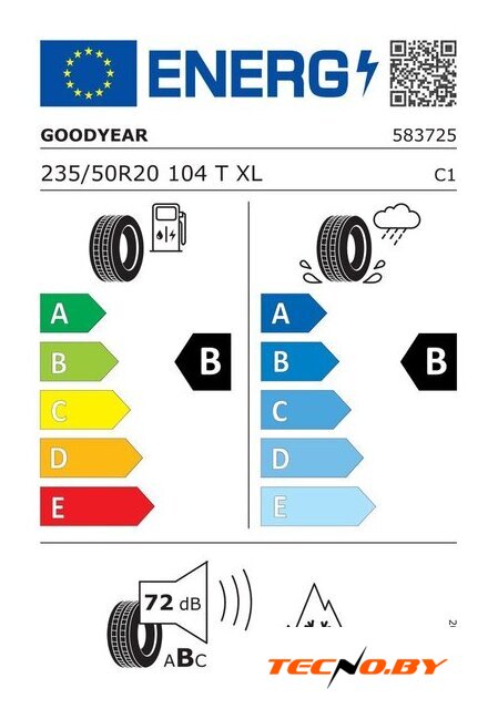 для легковых автомобилей/минивенов и кроссоверов/внедорожников, индекс скорости: H (до 210 км/ч), индекс нагрузки: 105 (925 кг), евроэтикетка: B/A/72 дБ