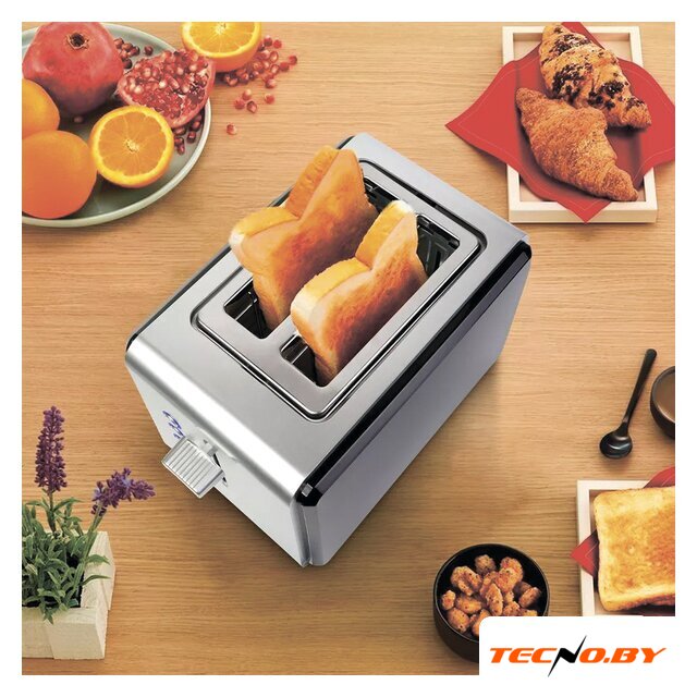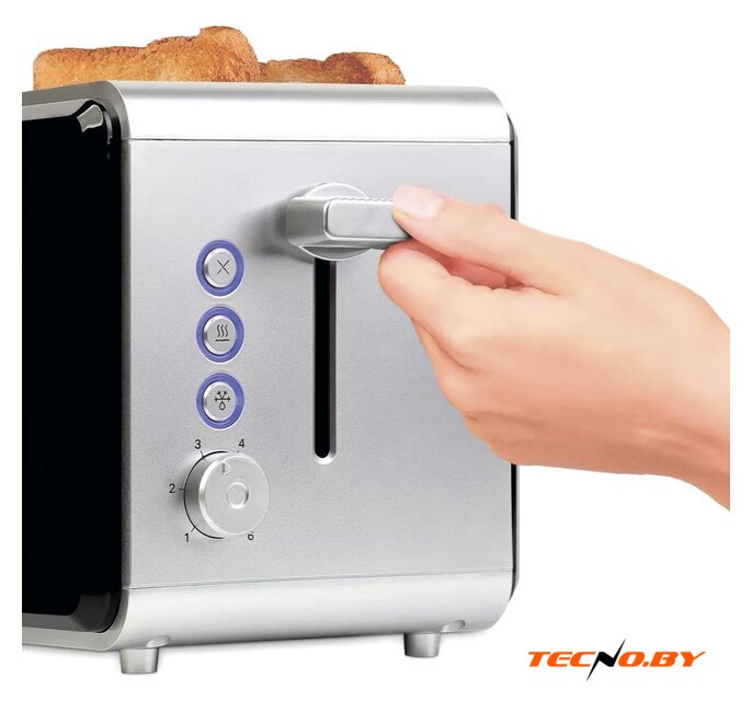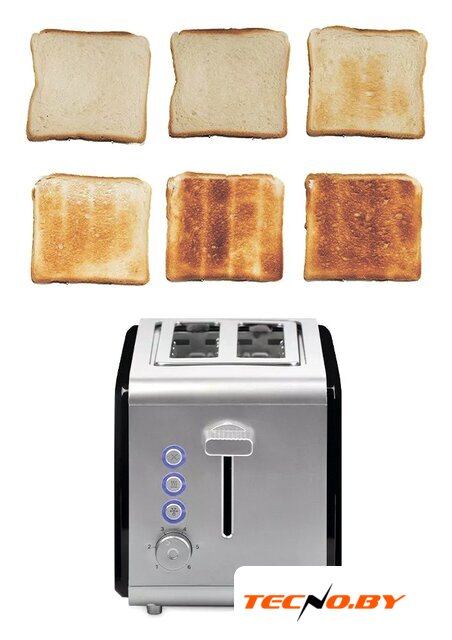 950 Вт, количество тостов: 2, корпус: металл, решетка для подогрева булочек, 6 степеней обжаривания, цвет нержавеющая сталь
