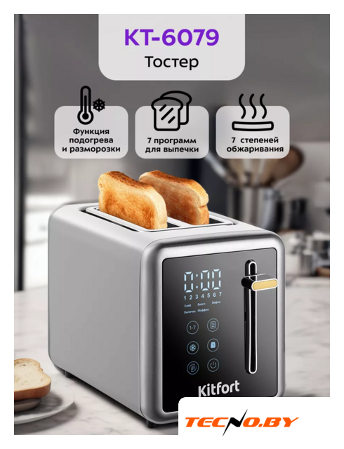 1080 Вт, количество тостов: 2, 7 степеней обжаривания, цвет черный