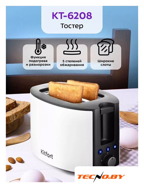 1080 Вт, количество тостов: 2, корпус: пластик, 7 степеней обжаривания, цвет белый/фиолетовый