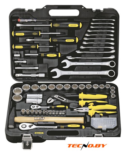 | Комплектация | - 12 шт.: 1/4" Головки торцевые 6-гранные Super Lock: 4, 4.5, 5, 5.5, 6, 7, 8, 9, 10, 11, 12, 13 мм- 1 шт.: 1/4" Трещотка (ключ трещоточный с быстрым сбросом): 45 зубов- 2 шт.: 1/4" Удлинитель: 50, 100 мм- 1 шт.: 1/4" Отвертка с присоединительным квадратом- 30 шт.: 1/4" Набор бит:Hex (шестигранник): 1.5, 2, 2.5, 3, 4, 5, 6Ph (крест): 0, 1, 2, 3, 4Pz (позидрайв): 0, 1, 2, 3, 4Torx (звёздочка): T10, T15, T20, T25, T27, T30Slot (шлиц): 3, 4, 4.5, 5, 5.5, 6, 7- 1 шт.: 1/4" Держатель для бит магнитный- 1 шт.: 1/4" Адаптер для бит- 17 шт.: 1/2" Головки торцевые 6-гранные Super Lock: 13, 14, 15, 16, 17, 18, 19, 20, 21, 22, 23, 24, 25, 26, 27, 30, 32 мм- 2 шт.: 1/2" Головки свечные магнитные: 16, 21 мм- 1 шт.: 1/2" Трещотка (ключ трещоточный с быстрым сбросом): 45 зубов- 1 шт.: 1/2" Удлинитель: 125 мм- 12 шт.: Ключи комбинированные: 6, 7, 8, 9, 10, 11, 12, 13, 14, 17, 19, 22 мм- 1 шт.: Молоток (деревянная ручка): 300 грамм- 4 шт.: Отвертки:Slot (шлиц): 6.5x100, 8x150 ммPh (крест): 1x75, 2x100 мм- 1 шт.: Клещи переставные: 250 мм- 1 шт.: Пассатижи: 180 мм- 1 шт.: Автотестер 6-12-24 V |