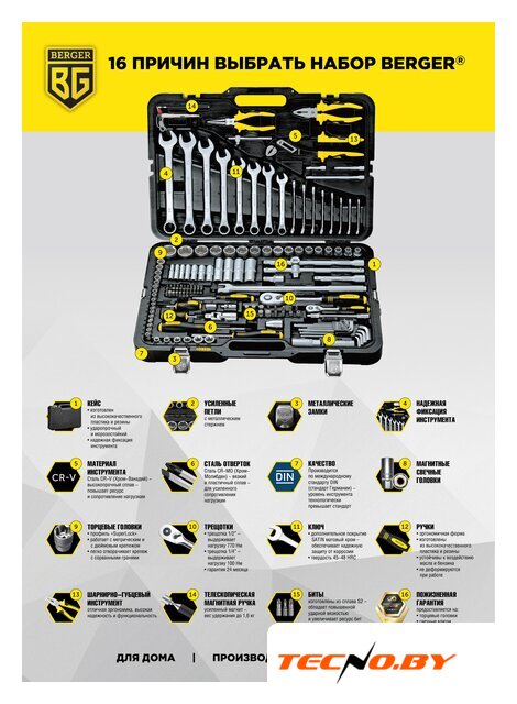 | Биты (насадки-отвертки) | 16 (Hex, Torx, Phillips, Pozidriv, Slotted) |