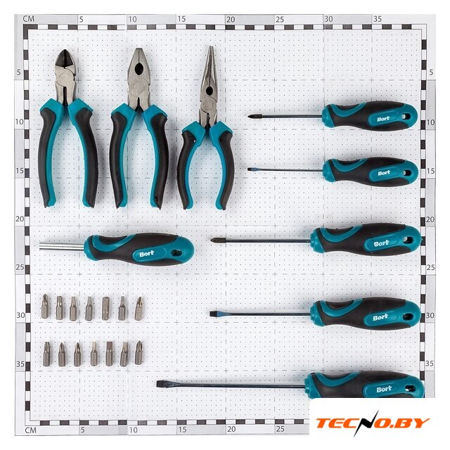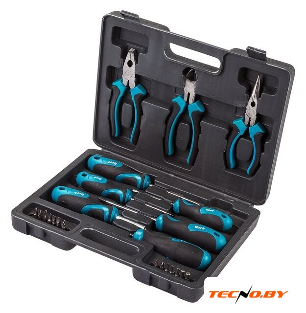 | Комплектация | Отвертки: 5 штОтвертка-держатель для бит: 1 штПлоскогубцы 160мм: 1 штТонкогубцы: 1 штБокорезы: 1 штБиты 25 мм: 14 шт |