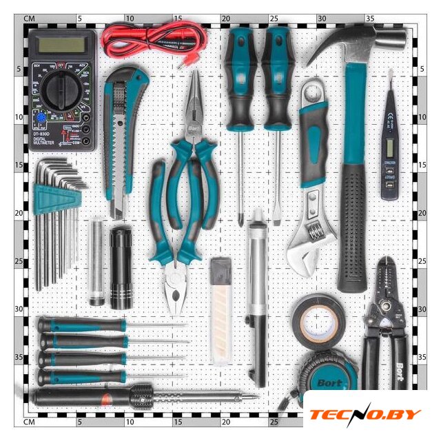 | Комплектация | - Изолента (1 шт)- Плоскогубцы (1 шт)- Длинногубцы 160мм (1 шт)- Приспособление для зачистки проводов (1 шт)- Набор сменных лезвий для ножа (10шт) (1 шт)- Отвертка-тестер (1 шт)- Канцелярский нож (1 шт)- Рулетка измерительная 3м (1 шт)- Отвертка часовая (4 шт)- Отсос припоя (1 шт)- Отвертка (2 шт)- Ключ шестигранный (8 шт)- Проволока-припой (1 шт)- Фонарик (1 шт)- Ключ разводной (1 шт)- Паяльник (1 шт)- Молоток (1 шт)- Мультитестер (1 шт)- Кабель со щупом (2 шт)- Кейс (1 шт) |