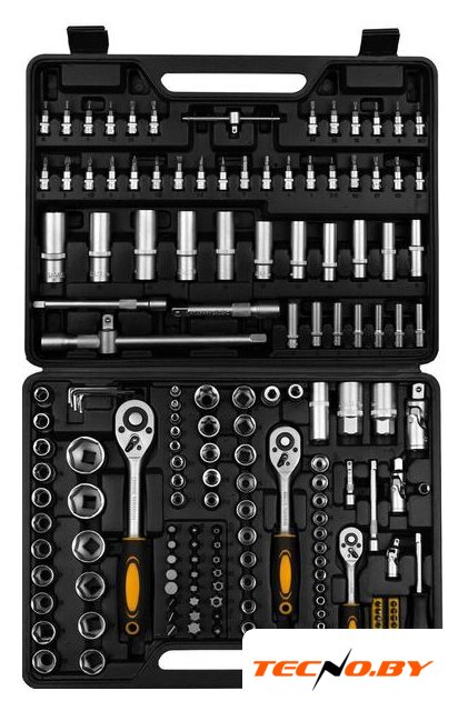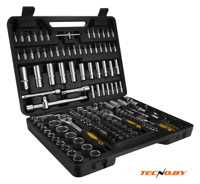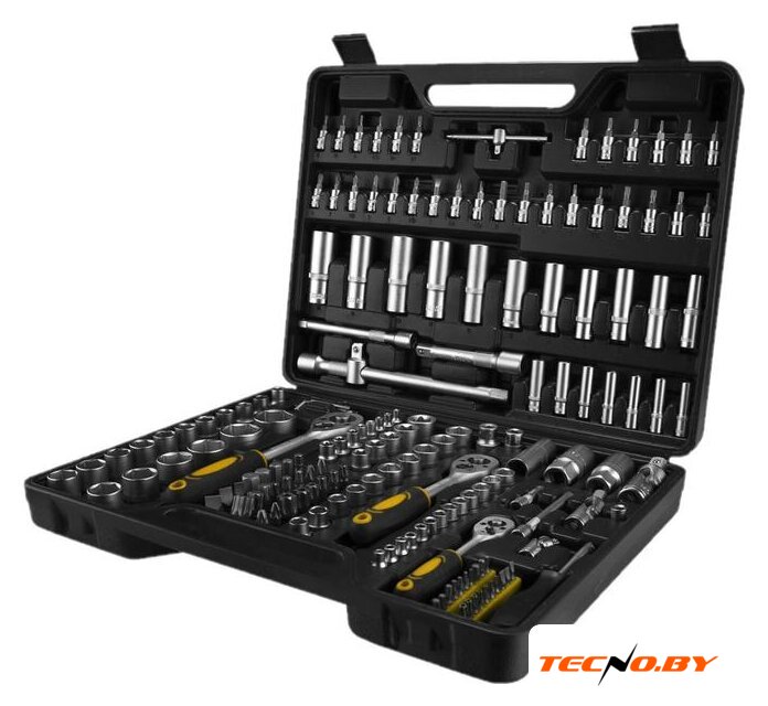| Комплектация | - Головки 1/4": 4, 4.5, 5, 5.5, 6, 7, 8, 9, 10, 11, 12, 13, 14 мм.- Головки Торкс 1/4": Е4, 5, 6, 7, 8.- Головки удлиненные 1/4": 4, 5, 6, 7, 8, 9, 10 мм.- Удлинитель торцевых головок 1/4": 2", 4".- Выдвижной Т-образный стержень 1/4".- Держатель для бит 1/4".- Биты: Н2, 3, 4, 5, 6; FD4, 5.5, 7; РН1, 2, 3; PZ1, 2, 3; T8, 9, 10, 15, 20, 25, 27, 30; TT8, 9, 10, 15, 20, 25, 27, 30.- Головки 3/8": 10, 11, 12, 13, 14, 15, 16, 17, 18, 19 мм.- Головки Торкс 3/8": Е10, 11, 12, 14, 16, 18.- Головки удлиненные 3/8": 10, 11, 12, 13, 14, 15 мм.- Головка свечная 3/8": 21 мм.- Удлинитель торцевых головок 3/8" х 6"- Головки 1/2": 10, 11, 12, 13, 14, 15, 16, 17, 18, 19, 20, 21, 22, 24, 27, 30, 32 мм.- Головки Торкс 1/2": Е20, 24.- Головки удлиненные 1/2": 16, 17, 18, 19, 22 мм.- Головка свечная 1/2": 16, 21 мм.- Удлинитель торцевых головок 1/2": 5", 10"- Переходник для головок торцевых 1/2"- Трещотка 1/2", 1/4", 3/8".- Шарнир карданный 1/2", 1/4", 3/8".- Ключ шестигранный 1.0, 1.5, 2, 2.5, 3, 4, 5 мм.- Биты 8 мм: H7, 8, 10, 12, 14; FD8, 10, 12; PH3, 4; PZ3, 4; T40, 45, 50, 55, 60, 70; TT40, 45, 50, 55, 60, 70.- Биты с держателем 6.35 мм: Т8, 9, 10, 15, 20, 25, 30; Н3, 4, 5; ТТ8, 9, 10, 15, 20, 25, 30; SL4, 5.5, 7.- Переходник для бит 1/2", 3/8". |