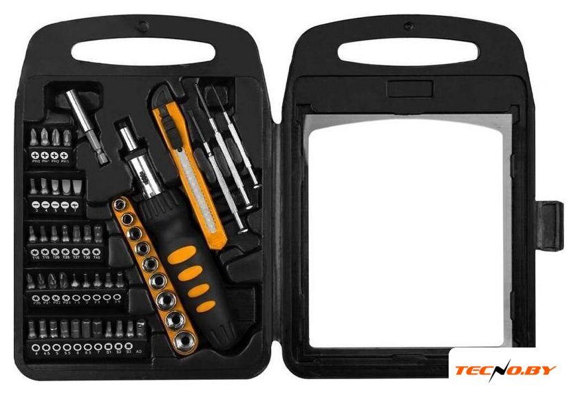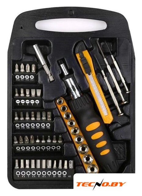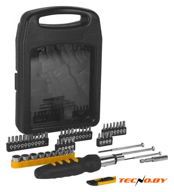 | Комплектация | - Биты 36 шт.- Точечные отвертки SL: 2.4, 3.0; PH0- Отвертка для бит 1/4".- Нож строительный.- Головки 1/4": 5, 6, 7, 8, 9, 10, 11, 12, 13 мм. Удлинитель магнитный.- Кейс |