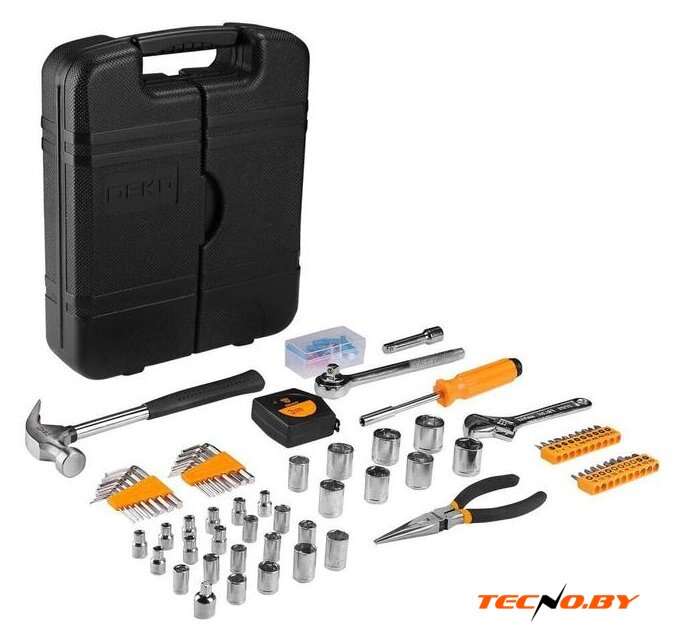 | Комплектация | - 16 шт шестигранные ключи 1.5-6мм,1/16-1/4"- 20 шт биты 25L: SL3,4,5,6,PH0,1,2,3, PZ0,1,2,3,T10,15,20,25,H3,4,5,6- 18 шт торцевые головки 1/4": 4,4.5,5,5.5,6,7,8,9,10мм,- 5/32,3/16,7/32,1/4,9/32,5/16,11/32,3/8,7/16- 10 шт торцевые головки 3/8": 12,13,14,15,17мм,1/2,9/16,5/8,3/4,11/16- 1 шт адаптер 3/8"x1/4"- 1 шт удлинитель 3/8"x3"- 1 шт трещотка 3/8"- 1 шт держатель бит 6.35мм- 1 шт молоток-гвоздодер 8 унций- 1 шт разводной ключ 6"- 1 шт длинногубцы 6"- 1 шт рулетка 3мм- 80 шт крепеж- Кейс |