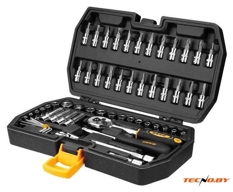 | Комплектация | - 24 шт. головки-биты 1/4" SL3,4,5,6,7, H2,3,4,5,6, S1,2,3, PH1,2,3, PZ1,2,3, T10,15,20,25,30- 13 шт. головки 1/4" 4,4.5,5,5.5,6,7,8,9,10,11,12,13,14mm- 6 шт. головки Е-профиль 1/4" E4,E5,E6,E7,E8,E10- 4 шт. головки удлиненные 1/4" 6,7,8,10mm- 1 шт. трещетка 1/4"- 1 шт. держатель для головок 1/4"- 1 шт. универсальный шарнир 1/4"- 2 шт. удлинители 1/4"x 2", 4"- 5 шт. шестигранные ключи 1.5,2,2.5,3,4mm |