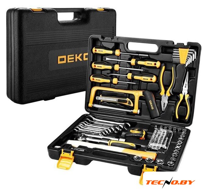 | Комплектация | - 1 шт. держатель для бит 6.35мм,- 4 шт. отвертка PH1x75, 2x100, SL5x75, 6x100мм,- 1 шт. строительный нож 9 мм,- 3 шт. дополнительные лезвия,- 1 шт. пила,- 2 шт. лезвия пилы,- 1 шт. плоскогубцы,- 1 шт. плоскогубцы с длинным носом,- 8 шт. шестигранный ключ (1,5 – 6мм),- 8 шт. комбинированные ключи 8,10,11,12,13,14,15,17мм,- 1 шт. измерительная лента,- 30 шт. биты,- 1 шт. магнитный держатель для бит 6.35x60мм,- 1 шт. адаптер 1/4"(M)x3/8"(F),- 9 шт. 1/4" головки 5,6,7,8,9,10,11,12,13мм,- 10 шт. 3/8" головки 8,9,10,11,12,13,14,15,17,19мм,- 1 шт. 3/8 "удлинитель 6"- 1 шт. универсальный шарнир 1/4"- 1 шт. молоток,- 1 шт. трещотка 3/8",- 3 шт. шестигранный ключ 1.5, 2, 2.5мм |
