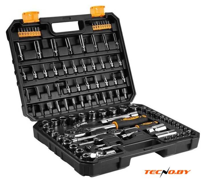 | Комплектация | - Головки свечные *2 шт. (1/2"x16,21mm)- Глубинные головки 1/4" *8 шт. (6,7,8,9,10,11,12,13мм)- Биты-головки *18 шт. (SL4, 5.5, 7, PH1, 2,PZ1, 2, H3, 4, 5, 6,T8,10, 15, 20,25,27,30)- Биты 25L *16 шт. (SL4,5,6,PH1,2,PZ1,2,H3,4,5,6,T10,15,20,25,30)- Биты 8мм *17 шт. (SL8,10,12,PH3,4,PZ3,4,H7,8,10,12,14,T40,45,50,55,60)- Головки 1/4" *12 шт. (4,4.5,5,5.5,6,7,8,9,10,11,12,13мм)- Головки Е 1/4" *4 шт. (E5,E6,E7,E8)- Головки 1/2" *13 шт. (10,11,12,13,14,15,16,17,18,19,20,21,22мм)- Головки Е 1/2" *4 шт. (E12,E14,E16,E18)- Адаптер *2 шт. (1/4"x6.35мм, 1/2"x8мм)- Универсальный шарнир *2 шт. (1/4",1/2")- Удлинители *3 шт. (1/4"x2,4", 1/2"x5")- Вороток *1 шт. 1/4"- Держатель для головок *1 шт. 1/4"- Гаечный ключ с трещоткой *2шт. (1/4",1/2")- Шестигранный ключ *3 шт. (1.5,2,2.5) |