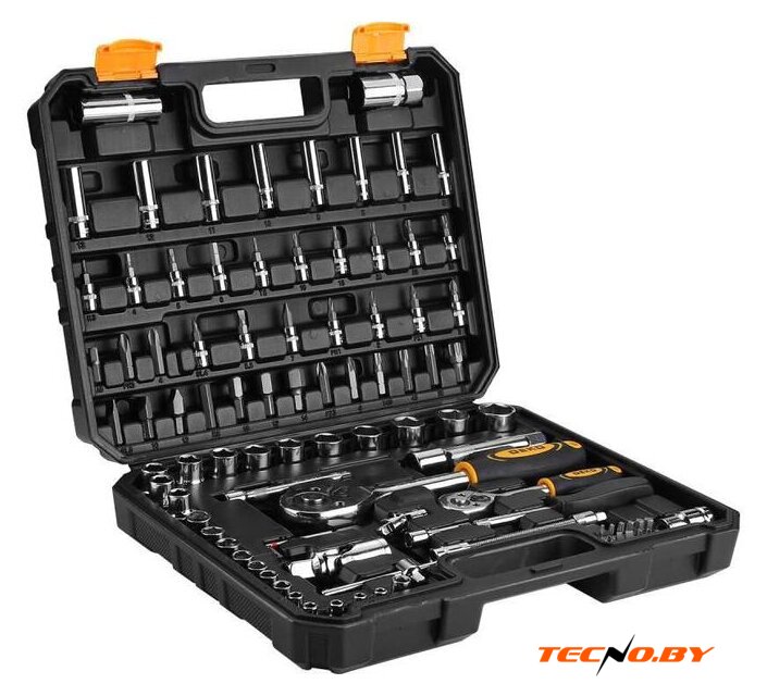 | Комплектация | Головки свечные *2 шт. (1/2"x16,21mm)Глубинные головки 1/4" *8 шт. (6,7,8,9,10,11,12,13мм)Биты-головки *17 шт. (SL4, 5.5, 7, PH1, 2,PZ1, 2, H3, 4, 5, 6,T8,10, 15, 20,25,30)Биты 25L *13 шт. (SL3,4,5,PH1,2,3,H4,5,6,T10,15,20,A.D.)Биты 8мм *15 шт. (SL8,10,12,PH3,4,PZ3,4,H8,10,12,14,T40,45,50,55)Головки 1/4" *12 шт. (4,4.5,5,5.5,6,7,8,9,10,11,12,13мм)Головки 1/2" *12 шт. (10,11,12,13,14,15,16,17,18,19,20,22мм)Адаптер *2 шт. (1/4"x6.35мм, 1/2"x8мм)Универсальный шарнир *2 шт. (1/4",1/2")Удлинители *3 шт. (1/4"x2,4", 1/2"x5")Вороток *1 шт. 1/4"Держатель для головок *1 шт. 1/4"Гаечный ключ с трещоткой *2шт. (1/4",1/2")Шестигранный ключ *3 шт. (1.5,2,2.5)Гибкий стержень *1 шт. 1/4" |