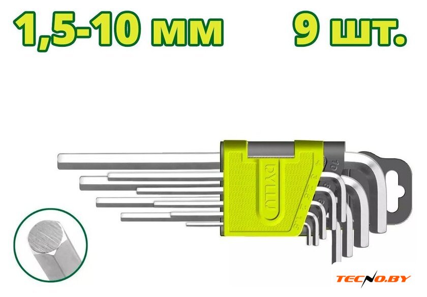 | Комплектация | Шестигранный ключ (1,5 мм / 2 мм / 2,5 мм / 3 мм / 4 мм / 5 мм / 6 мм / 8 мм / 10 мм) - 9 шт. |