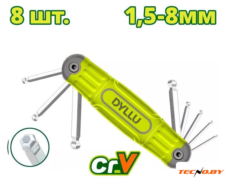 | Комплектация | Ключ шестигранный со сферической головкой (1,5, 2, 2,5, 3, 4, 5, 6, 8 мм) - 8 шт. |