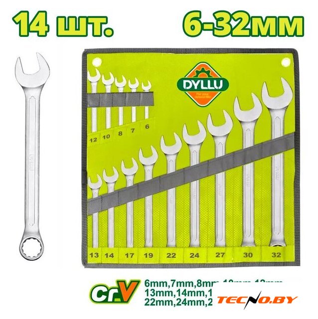 | Комплектация | Комбинированный ключ (6, 7, 8, 10, 12, 13, 14, 17, 19, 22, 24, 27, 30, 32 мм) - 14 шт. |