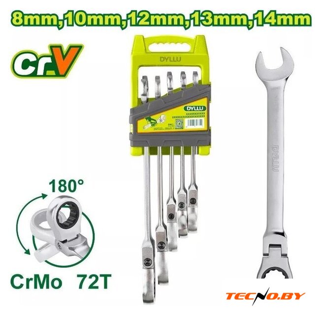| Комплектация | набор гаечных ключей с трещоткой и шарниром 8-14мм - 5шт. (8мм, 10мм, 12мм, 13мм, 14мм); Пластиковый подвес для хранения - 1 шт. |