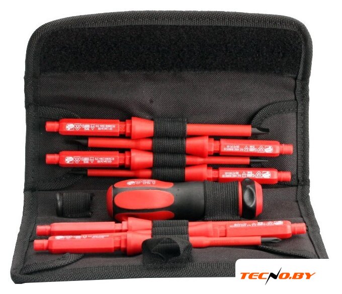 | Комплектация | - отвертка: шлиц 3.0х100- отвертка: шлиц 4.0х100- отвертка: шлиц 5.5х100- отвертка: шлиц 6.5х100- отвертка: PH0х100- отвертка: PH1х100- отвертка: PH2х100- рукоятка для сменных отверток- вращающаяся насадка на стержни для работ с электроникой |