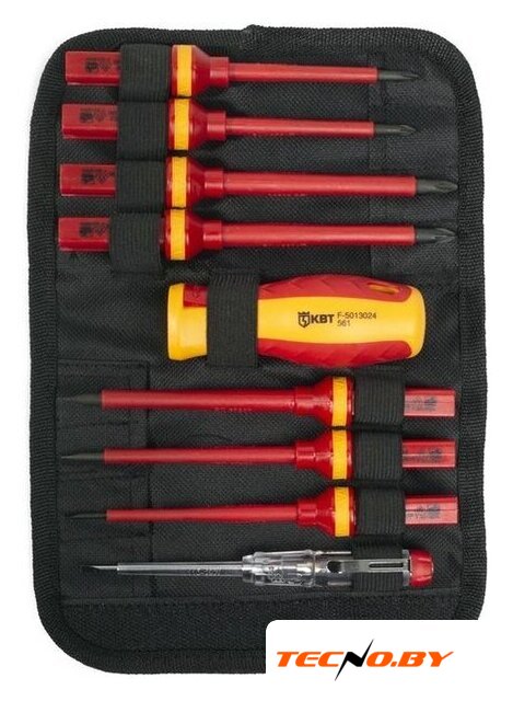 | Комплектация | - Диэлектрическая бита: шлиц 3.0х100- Диэлектрическая бита: шлиц 4.0х100- Диэлектрическая бита: шлиц 5.5х100- Диэлектрическая бита: PH1х80- Диэлектрическая бита: PH х100- Диэлектрическая бита: PZ1х80- Диэлектрическая бита: PZ2х100- Тестер напряжения 110–250 В- Диэлектрическая рукоятка для сменных бит |