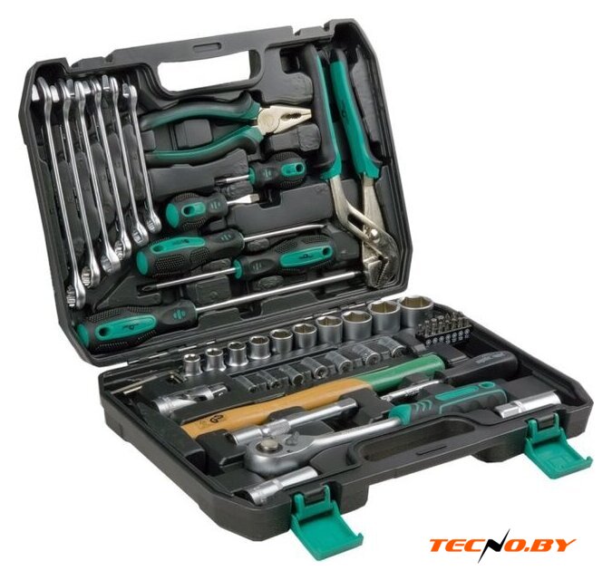| Комплектация | - Биты шестигранные (HEX) 1/4: 3, 4, 5 и 6 мм - Используются для работы с гаечными соединениями шестигранного типа.- Биты PHILLIPS: PH1, PH2 и PH3 - Предназначены для работы с крестообразными головками винтов.- Биты с внешней звездой TORX 1/4: T10, T15, T20, T25, T27, T30 и T40. Предназначены для работы с винтами и болтами с внешними звездообразными отверстиями.- Держатель для бит 1/4" — это приспособление, которое используется для удобного хранения и организации бит. Он позволяет легко находить нужную насадку и не терять ее.- Вороток-отвертка 150 мм подходит для торцевых головок с присоединительным квадратом 1/4”. Небольшие размеры отвертки позволяют использовать ее в условиях ограниченного пространства.- Головки (6 граней) 1/2" - размеры: 10, 11, 12, 13, 15, 17, 19, 22, 24 и 27 мм, которые подходят для работы с гайками и болтами различных диаметров. Они имеют шестигранный профиль, который обеспечивает крепкое и надежное соединение с крепежом.- Головки (6 граней) 1/4" - размеры: 8, 9, 10, 11, 12 и 13 мм, которые подходят для работы с гайками и болтами различных диаметров. Они имеют шестигранный профиль, который обеспечивает крепкое и надежное соединение с крепежом.- Головки свечные (6 граней) – размеры: 16 и 21 мм, которые позволяют легко и безопасно заменять свечи зажигания в автомобиле.- Кардан 1/2" – приспособление для воротка, которое обеспечивает гибкость и позволяет работать под разными углами, упрощая доступ к труднодоступным местам.- Трещотка 1/2" – это инструмент, который ускоряет и облегчает процесс работы с крепежом, позволяет изменить направления вращения и регулировать размер используемой головки.- Удлинитель 1/2" 125 мм— это приспособление, которое используется для увеличения длины воротка или головки. Удлинитель обеспечивает дополнительную длину для работы в труднодоступных местах и увеличивает рабочий радиус.- Ключ переставной (захват трубный) 250 мм – это универсальный инструмент, который предназначен для фиксации, отворачивания/заворачивания крепежей, не имеющих специального рабочего профиля, а также используются в качестве трубного или разводного ключа.- Комбинированные ключи – размеры: 10, 12, 13, 14, 15 и 17 мм - это инструменты, которые состоят из двух частей: одна часть имеет шестигранный профиль, а другая - рожковый. Комбинированные ключи подходят для работы с гайками и болтами разных размеров.- Слесарный молоток немецкого типа 300 гр. – это надежный и качественный инструмент, предназначенный для клепальных и столярно-слесарных работ, где требуется ударная сила. Молоток изготовлен по немецкому стандарту DIN 1041. Рабочая часть молотка выполнена из штампованной инструментальной стали марки 45. Рукоятка молотка сделана из качественной древесины и обработана специальным лаком.- Отвертки – размеры: 8x200 мм (+), 6x100 мм (-), 6x40 мм (-), 6x100 мм (+), 6x40 мм (+) – это инструменты, которые используется для демонтажа или монтажа крепежных элементов (винтов или шурупов).- Пассатижи 180 мм (PROFFI) – это универсальный инструмент, который пригодится вам в различных ситуациях. Вы можете использовать его для захвата, удержания, изгибания и обрезания круглых и плоских предметов, таких как проволока, провода, гвозди, болты и т.д.- Шестигранные ключи – размеры: 1.5, 2, 3 и 4 мм – это инструменты, которые предназначены для работы с гаечными соединениями с шестигранным профилем. |