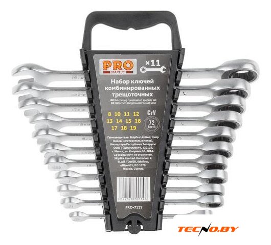 | Комплектация | Набор ключей комбинированных 8-19мм 11шт (8, 10, 11, 12, 13, 14, 15, 16, 17, 18, 19 мм) трещоточных. |