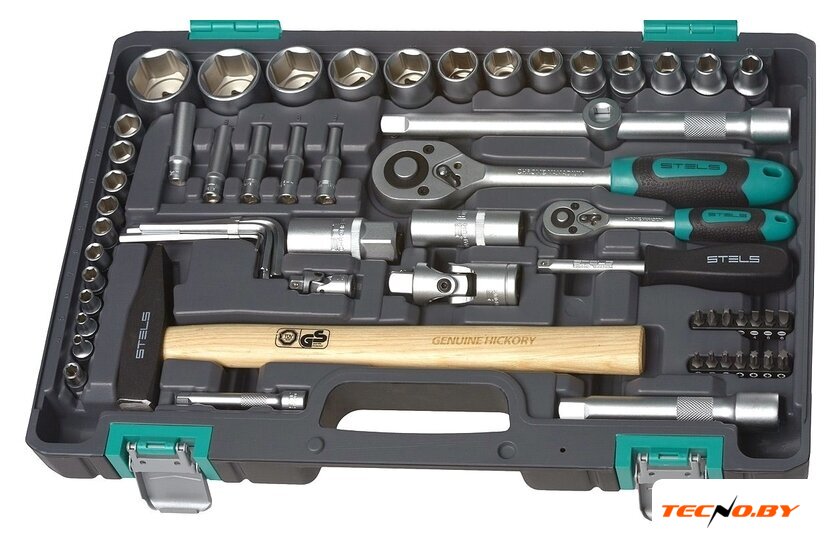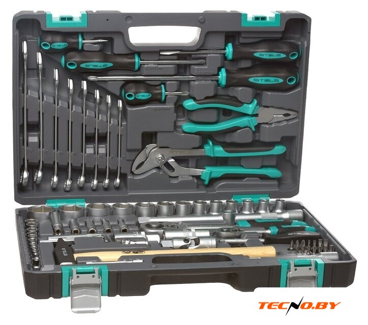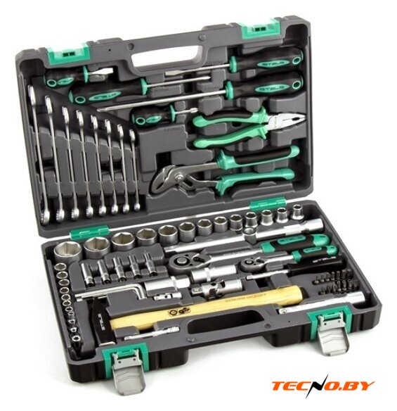 | Комплектация | - Ключ трещоточный 1/2.- Ключ трещоточный 1/4.- Головки торцевые 1/2: 10, 11, 12, 13, 14, 15, 17, 19, 22, 24, 27, 30, 32.- Головки торцевые 1/4: 4, 5, 6, 7, 8, 9, 10, 11, 12, 13.- Головки торцевые 1/4, удлиненные: 5, 6, 7, 8, 9.- Ключи комбинированные: 10, 11, 12, 13, 14, 15, 17, 19.- Кардан 1/2.- Кардан 1/4.- Удлинитель 1/2.- Удлинитель 1/4.- Отвертка-держатель 1/4.- Переходник для бит 1/4.- Набор шестигранных ключей: 1.5 мм, 2.0 мм, 3 мм, 3.5 мм, 5 мм, 6 мм, 7 мм.- Головки свечные 16 мм и 21 мм.- Вороток Т-образный 1/2.- Биты: Т10, Т15, Т20, Т25, Т27, Т30, T40, SL3, SL4, SL5, SL6, PH1, PH2, PH3.- Пассатижи.- Клещи переставные.- Молоток, масса головки 0,3 кг.- Отвертки: SL6 x 100; SL6,5 x 38, PH2 x 38; PH2 x 100; PH3 x 200. |