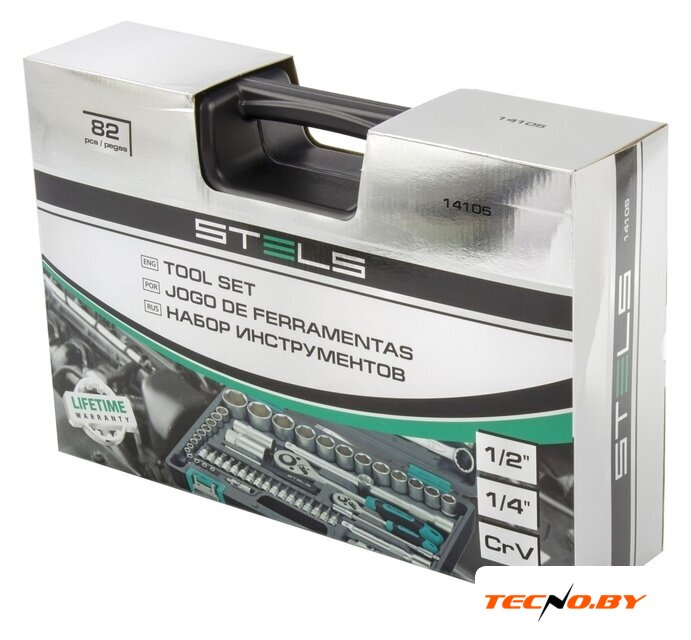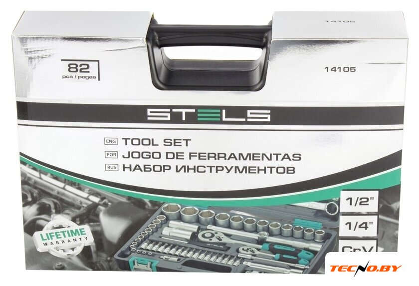 | Комплектация | - Ключ трещоточный 1/2.- Ключ трещоточный 1/4.- Головки торцевые 1/2: 14, 15, 16, 17, 18, 19, 20, 22, 24, 27, 30, 32.- Головки торцевые 1/4: 4, 4.5, 5, 5.5, 6, 7, 8, 9, 10, 11, 12, 13, 14.- Удлинитель гибкий отверточная рукоятка 1/4.- Ключи комбинированные: 8, 10, 11, 12, 13, 14, 17, 19, 22.- Кардан 1/2.- Кардан 1/4.- Удлинитель 1/2: 125 мм, 250 мм.- Удлинитель 1/4: 50 мм, 100 мм.- Адаптер для бит 1/4 -длина 25 мм.- Головки свечные 1/2: 16 мм и 21 мм;- Вороток Т-образный, 1/2, 1/4.- Биты с торцевой головкой 1/4 -длина 32 мм: Н - 3, 4, 5, 6, T8, T10, T15, T20, T25, T30, SL 4, 5.5, 7, PH1, PH2, PZ1, PZ2.- Адаптер 1/2 на 3/8.- Держатель для бит 1/2 на 5/16.- Биты 5/16: T40, Т45, Т50, Т55, SL8, SL10, SL12, PH3, PH4, PZ3, PZ4, Н - 8, 10, 12, 14.- Отвертка держатель для бит. |