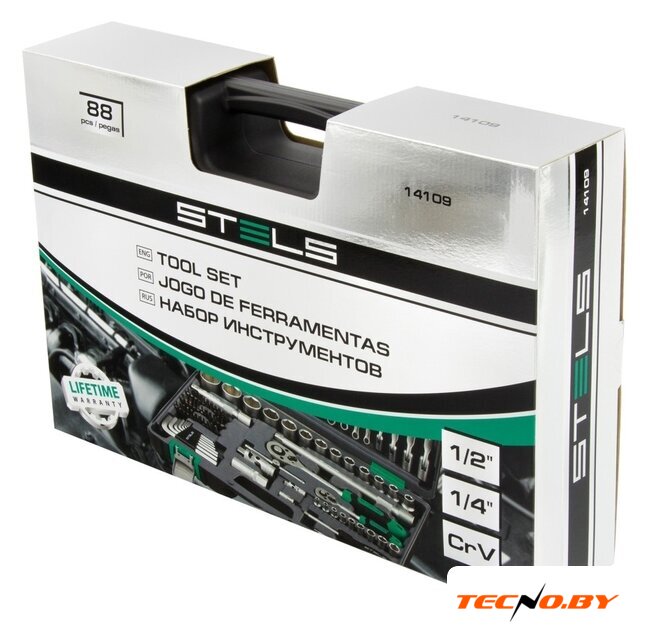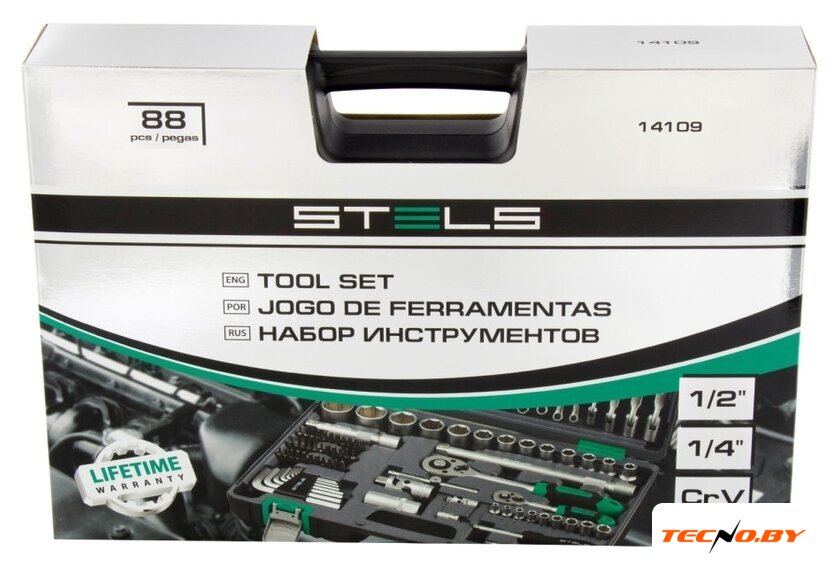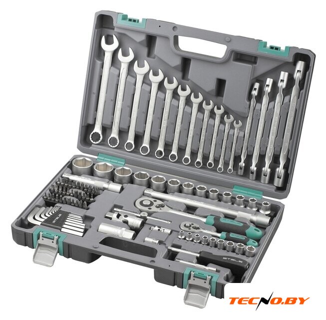 | Комплектация | - Ключ трещоточный 1/2.- Ключ трещоточный 1/4.- Головки торцевые 1/2: 10, 11, 12, 13, 14, 15, 17, 19, 22,24, 27, 30, 32 мм.- Головки торцевые 1/4: 4, 5, 6, 7, 8, 9, 10, 11, 12 мм.- Ключи комбинированные 6,7,8,9,10,11,12,13,14,17,19.- Ключи шарнирные 8х9, 10х11, 12х13, 14х15.- Кардан 1/2.- Кардан 1/4.- Удлинитель 1/2, соединение под ключ 120 мм и 250 мм.- Удлинитель 1/4, соединение под ключ 100 мм.- Отвертка-держатель 1/4.- Вороток Т-образный 1/4.- Угловые шестигранные ключи 2 мм, 2.5 мм, 3 мм, 4 мм, 5 мм, 6 мм, 8 мм, 10 мм.- Головки свечные 1/2 16 мм и 21 мм.- Переходник бит 1/4->1/4.- Биты 1/4" Т10, Т15, Т20, Т25, Т27, Т30, T40. ТТ10, ТТ15, ТТ20, ТТ25, ТТ27, ТТ30, ТT40. SL 4, SL 5.5, SL 7. Н2, Н3, Н4, Н5, Н6, Н7, Н8, Н10. PZ 0, PZ 1, PZ 2, PZ 3. РН0, РН1, РН2, PH3. |