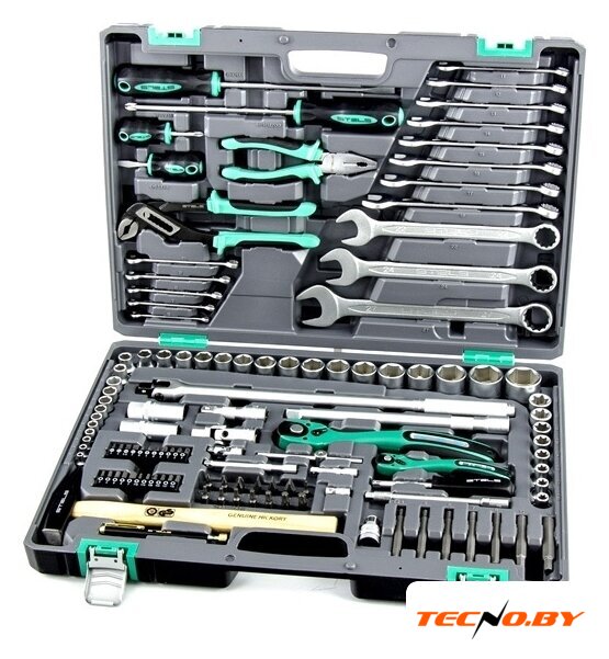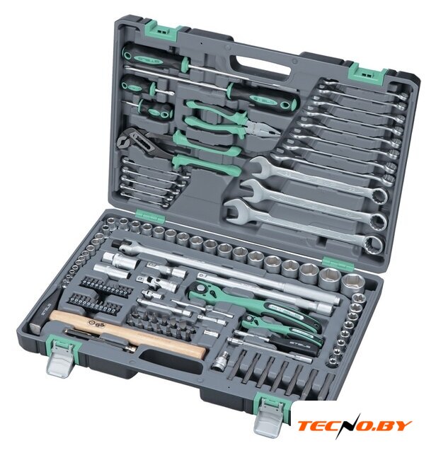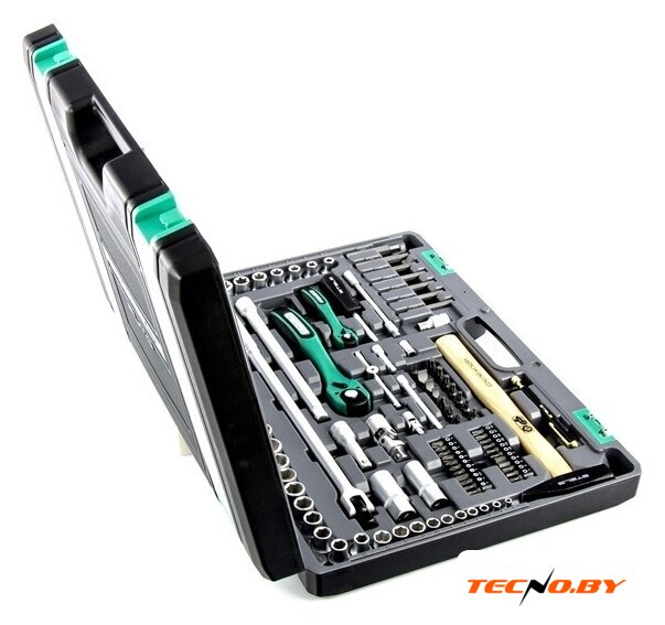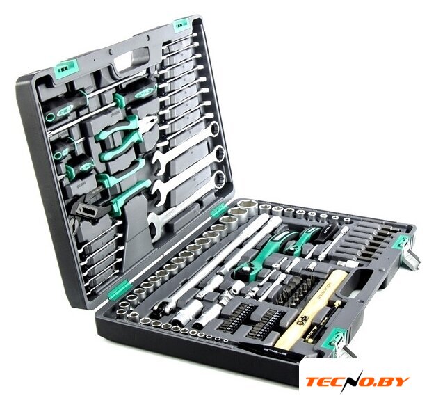 | Комплектация | - Ключ трещоточный 1/4.- Ключ трещоточный 1/2.- Головки торцевые 1/2: 10, 11, 12, 13, 14, 15, 16, 17, 18, 19, 20, 21, 22, 23, 24, 27, 30, 32, Е10, Е11, Е12, Е14, Е16, Е18, Е20, Е22.- Головки свечные 1/2: 21 мм и 16 мм.- Удлинители 1/2 250 мм, под ключ и 75 мм, под ключ.- Удлинители 1/4 100 мм под ключ и 50 мм под ключ.- Удлинитель гибкий 1/4: 145 мм, под ключ.- Головки торцевые 1/4: 4, 5, 6, 7, 8, 9, 10, 11, 12, 13.- Вороток г-образный.- Вороток на 1/4.- Биты, 8 мм диаметр, длина 30 мм PH1, PH2, PH3 SL4, SL5.5, SL7 T10, T20, T25, T27, T30, T40, T45, T50.- Биты 1/4 ” диаметра, длина 25 мм Т10, Т15, Т20, Т25, Т27, Т30, Н3, Н4, Н5, Н6, Н7, SL3, SL4, SL5.5, SL7, PZ1, PZ2, PZ3, PH0, PH1, PH2, PH3.- Биты удлиненные, длина 75 мм, диаметр 8 мм.- Переходник с 1/2 квадрат на шестигранник диаметром 8 мм H4, H5, H6, H7, H8, H10, H12- Молоток, с квадратным бойком, 300 гр.- Отвертка держатель 1/4.- Пассатижи.- Клещи переставные.- Отвертки SL8 x 200 мм, PH3 x 200 мм.- Отвертки SL6.5 x 38 мм, PH2 x 38 мм.- Ключи комбинированные 6, 7, 8, 9, 10, 11, 12, 13, 14, 15, 16, 17, 19, 22, 24, 27.- Ручка телескопическая – магнит, длина 15 мм, выдвигается на 54 мм, диаметр наконечника 11 мм.- Кардан на 1/2 и 1/4. |