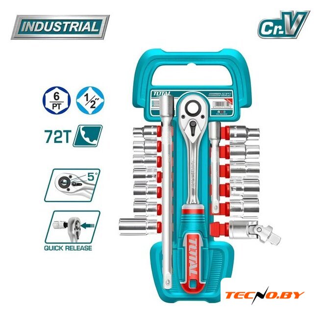 | Комплектация | Трещотка 72T 1/2" - 1 шт. Торцевые головоки 1/2" (10 / 11 / 12 / 13 / 14 / 15 / 16 / 17 / 18 / 19 / 21 / 24) - 12 шт. Свечная головка 16 мм - 1 шт. Универсальный шарнир 1/2" - 1 шт. Удлинитель 1/2" (125 мм) - 1 шт. Удлинитель 1/2" (250 мм) - 1 шт. Пластиковый подвес для хранения |