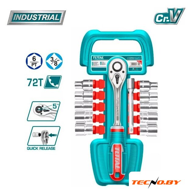 | Комплектация | Трещотка 72T 3/8" - 1 шт. Торцевые головоки 3/8" (8 / 10 / 11 / 12 / 13 / 14 / 15 / 16 / 17 / 19) - 12 шт. Удлинитель 3/8" (150 мм) - 1 шт. Пластиковый подвес для хранения |